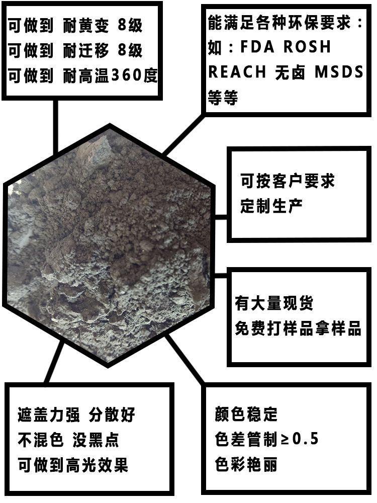 1.颜料品种齐全,拥有颜色技术团队解决各种颜色问题。
