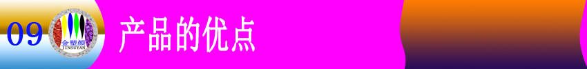 颗料能很好地分散于制品塑料中。由于在贮存和使用过程中颜料直接接触空气,